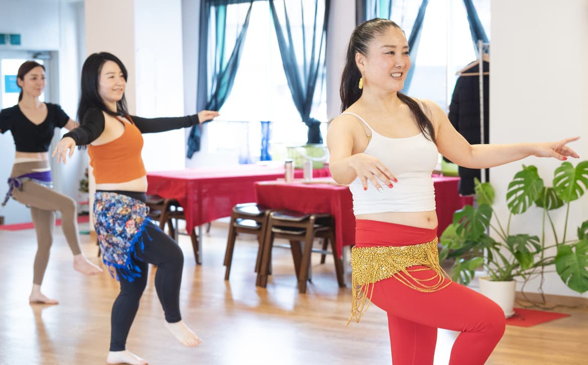 カナダで没頭していたクラブ活動でダンスの楽しさに目覚め、帰国後、ベリーダンスをはじめる。